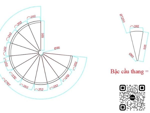 Bản vẽ thiết kế cầu thang xoắn bằng sắt tại Dũng Thúy