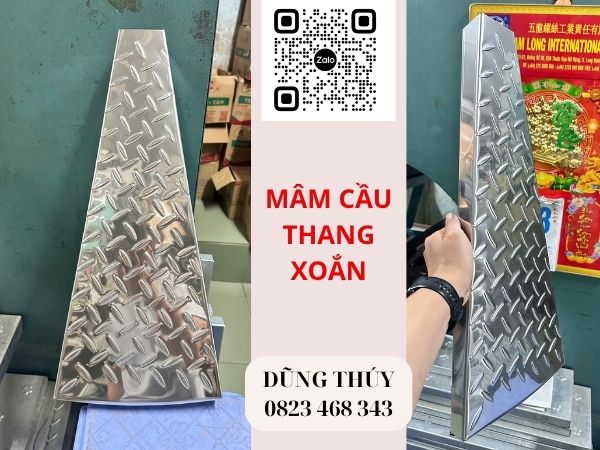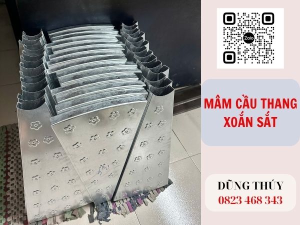 Thông thường, mỗi mâm sẽ được sản xuất riêng biệt theo kích thước cụ thể, độ dày yêu cầu và hoa văn mong muốn. Khi lắp đặt, các mâm được cố định từng bậc theo chiều xoắn, tạo thành một hệ cầu thang hoàn chỉnh, vừa đảm bảo kết cấu chịu lực, vừa mang lại giá trị thẩm mỹ cao cho không gian.