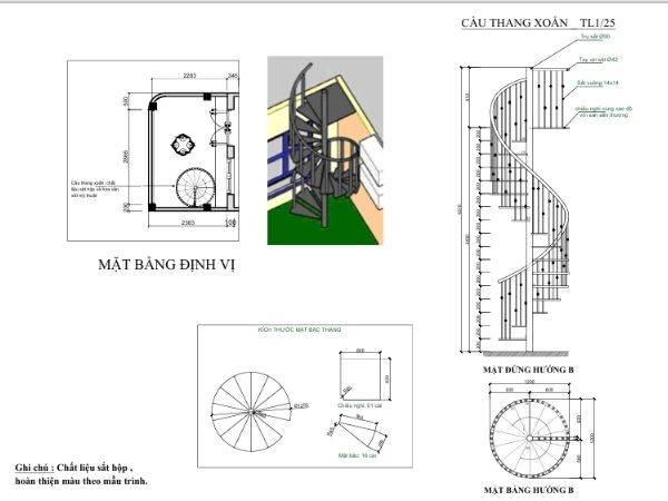 Bản vẽ cầu thang sắt xoắn cho dự án tại Tam Bình Thủ Đức